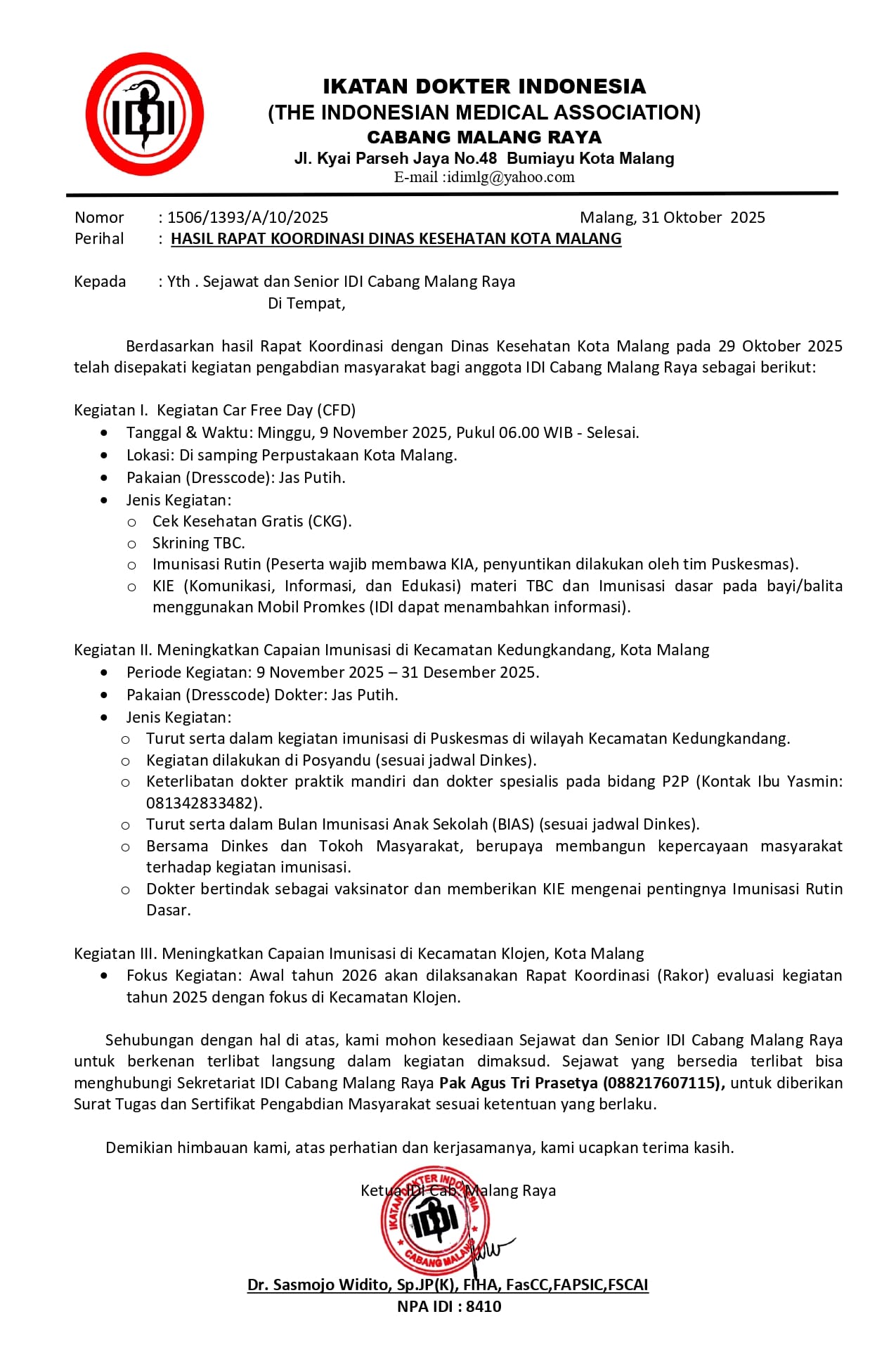 Ketua IDI cabang Malang Raya Periode 2023 – 2026